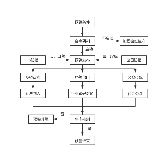 1.气象部门发布暴雨灾害I级预警或暴雨红色预警信号,或水文部门发布水情红色预警。